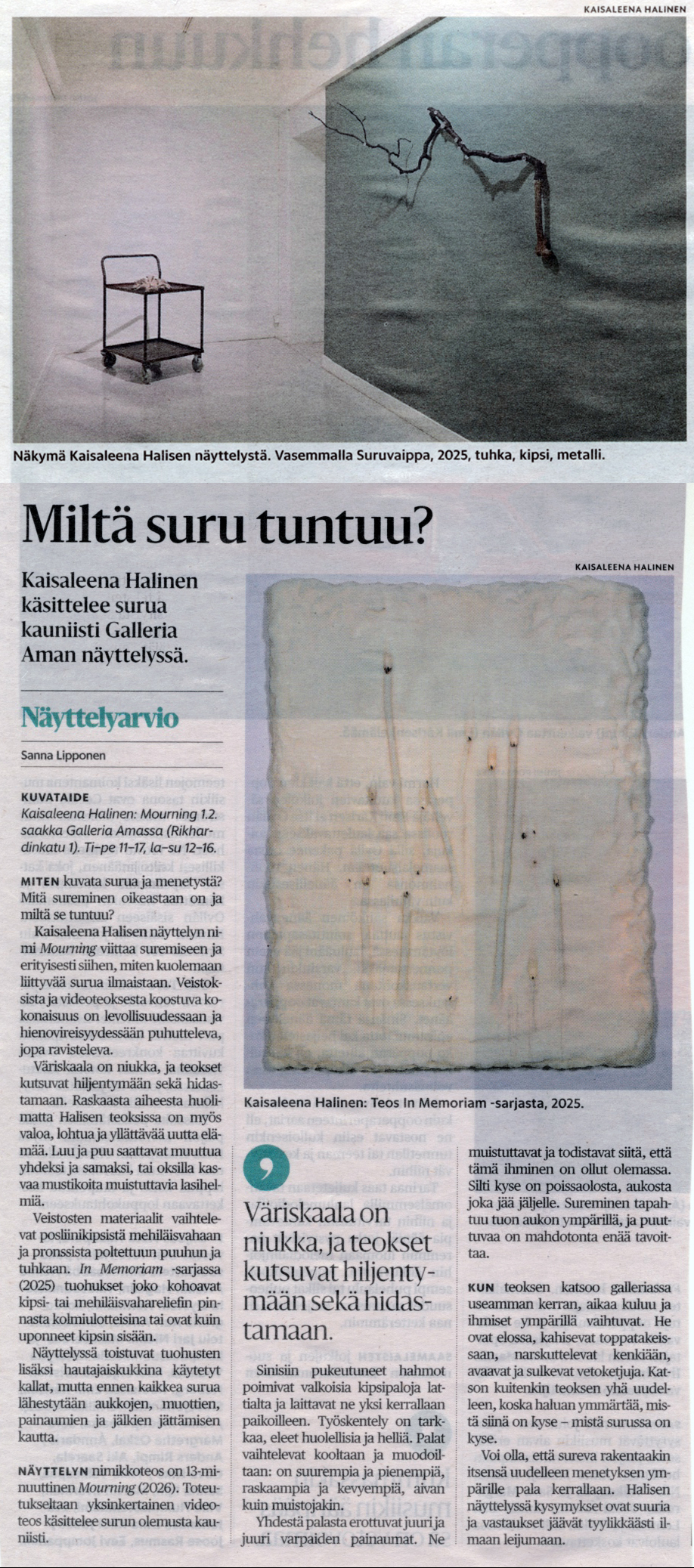 If Holbein’s painted dead Christ, through his humanity, caused someone to doubt his divinity, are we capable of seeing divinity in the humanity of the deceased? I cannot say. I do not know the answer. The Hungarian writer Imre Kertész wrote: “The only path to freedom passes through memory.” In Kaisaleena Halinen’s works, the gates of memory are slightly opened. Each of us builds our own memories until it is others’ turn. Then we become a trace in time, an imprint in plaster. Let us hope that at that moment gentle hands will carry us.